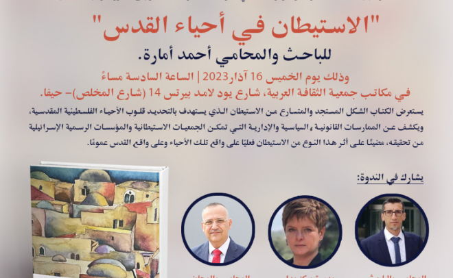 دعوة لندوة إطلاق كتاب "الاستيطان في أحياء القدس" للباحث أحمد أمارة