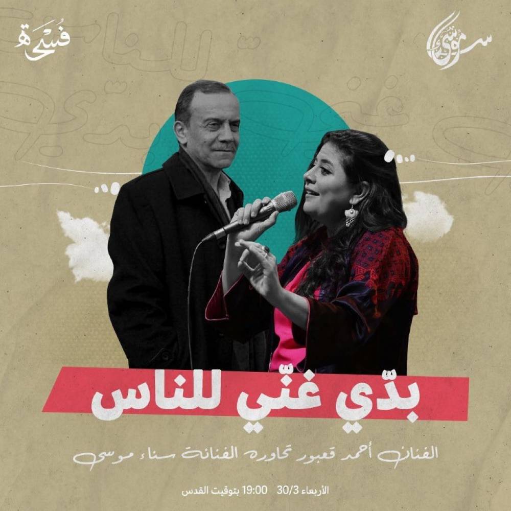 ومن جهة أخرى وبالشراكة مع مجلة فسحة – ثقافة فلسطينية قدم مشروع "حوارية" يوم أمس لقاء فنيا شيقا بين الفنانة سناء موسى والفنان أحمد قعبور تحت عنوان "بدي غني للناس" تضمن عدة أسئلة ومداخلات للجمهور للحديث حول دور الفن بشكل عام ودور الأغنية الثائرة ومواصفاتها الفنية في تقديم القضايا الوطنية ودور الفنان في قضية شعبه، كما تطرق لها الفنان قعبور من خلال أحد الأسئلة المركزية التي قدمتها موسى حين قال إن " من المعيب عدم تداخل الفنان مع قضايا شعبه، أنا لم أتطرق لقضايا شعبي لكوني عربيًا فقط، أو يساريا، بل لأن اخلاقي وإنسانيتي وانتمائي لوجع الناس هو من جعلني أغني، أما في سؤال الكيفية، فالتعبير من خلال الكلمة أو اللحن يجب أن يرتقي لمستوى قضايانا ومشاكلنا"